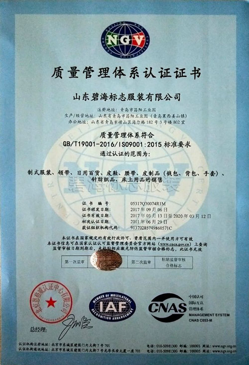 山東碧海標志服裝有限公司(原山東省軍工服裝廠)創建于1985年,專注標志服裝、團體服裝、職業服裝領域40年,在國內享有較高知名度和美譽度。旗下“BEHIGHER碧海”品牌系列服裝產品成功將科技元素融入產品,展現了企業的創新實力。碧海標志服系列產品已通過公安部特種警用裝備質量監督檢驗中心的檢測.產品已廣泛用于全國多個部門,產品品質得到公安.武警.公安邊防等多部門的認可和好評......